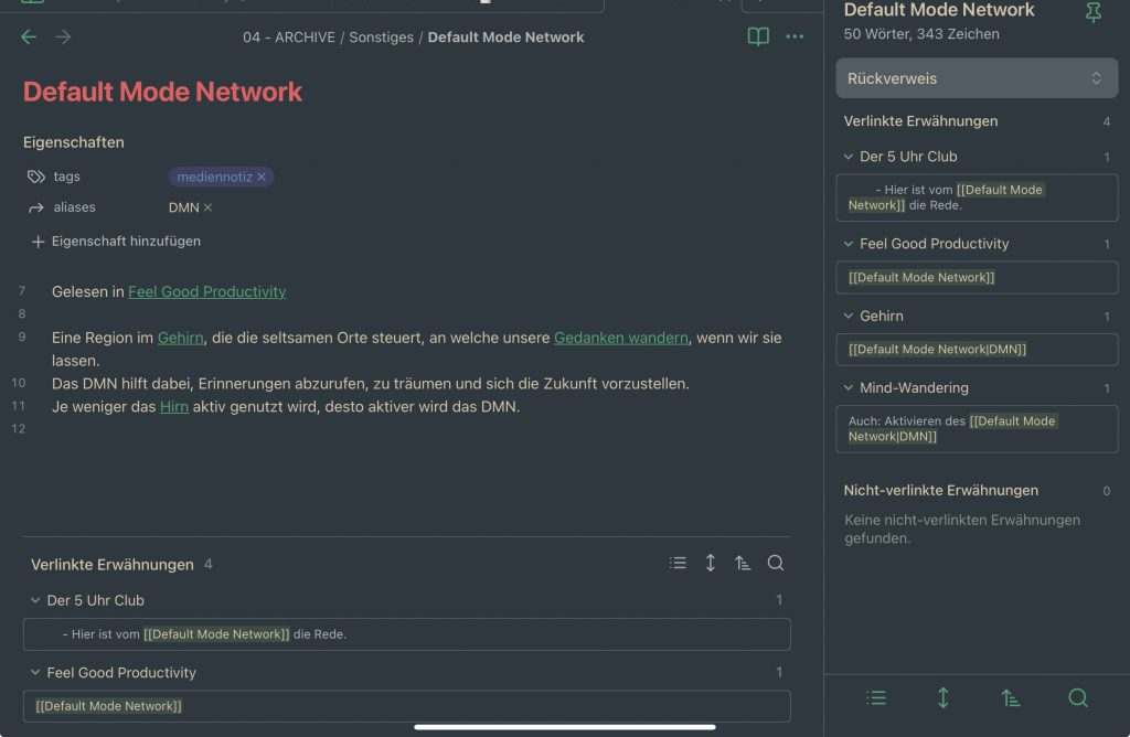 - Anstatt starr in Ordnern zu denken, verlinke Begriffe, Projekte und Gedanken miteinander.