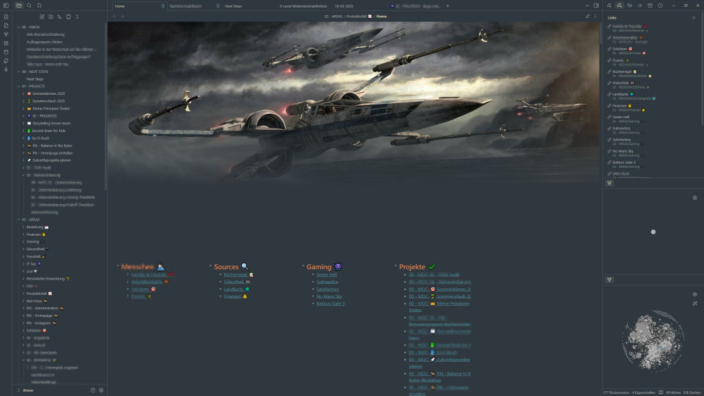 Obsidian basiert auf Markdown-Dateien, die lokal auf deinem Rechner gespeichert werden. Du behältst die Kontrolle – und kannst gleichzeitig mit Plugins, Backlinks und visuellen Graphen dein eigenes Netzwerk aus Gedanken aufbauen.